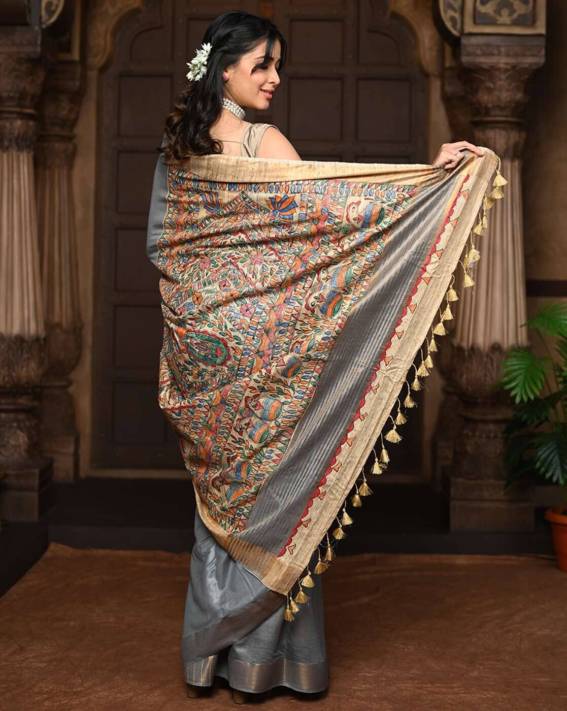 - The last image gives a detailed look of the blouse piece that comes with this saree (The model is wearing a blouse from our in-house wardrobe)