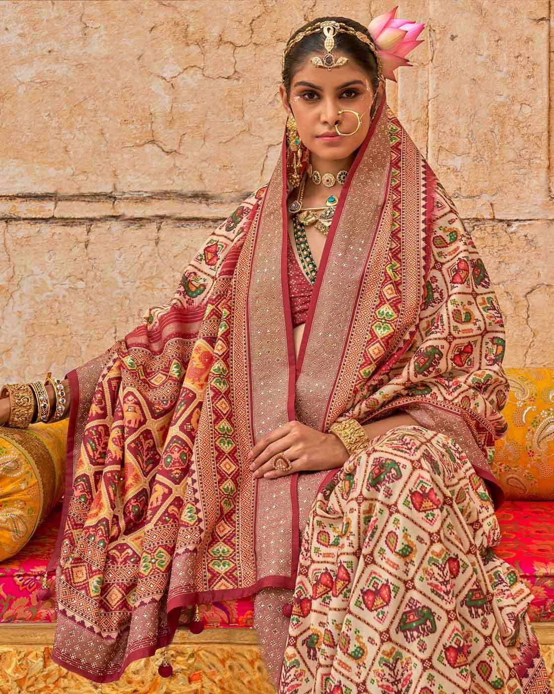 - Print & Pattern :- Ikat, Work Deatils :- Tassels and Latkans, Occasion :- Traditional/Festive, Type :- Patola