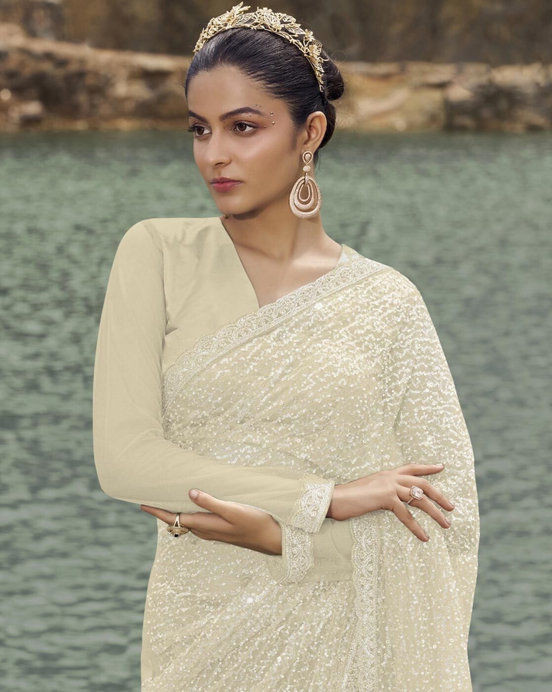 - The last image gives a detailed look of the blouse piece that comes with this saree (The model is wearing a blouse from our in-house wardrobe)